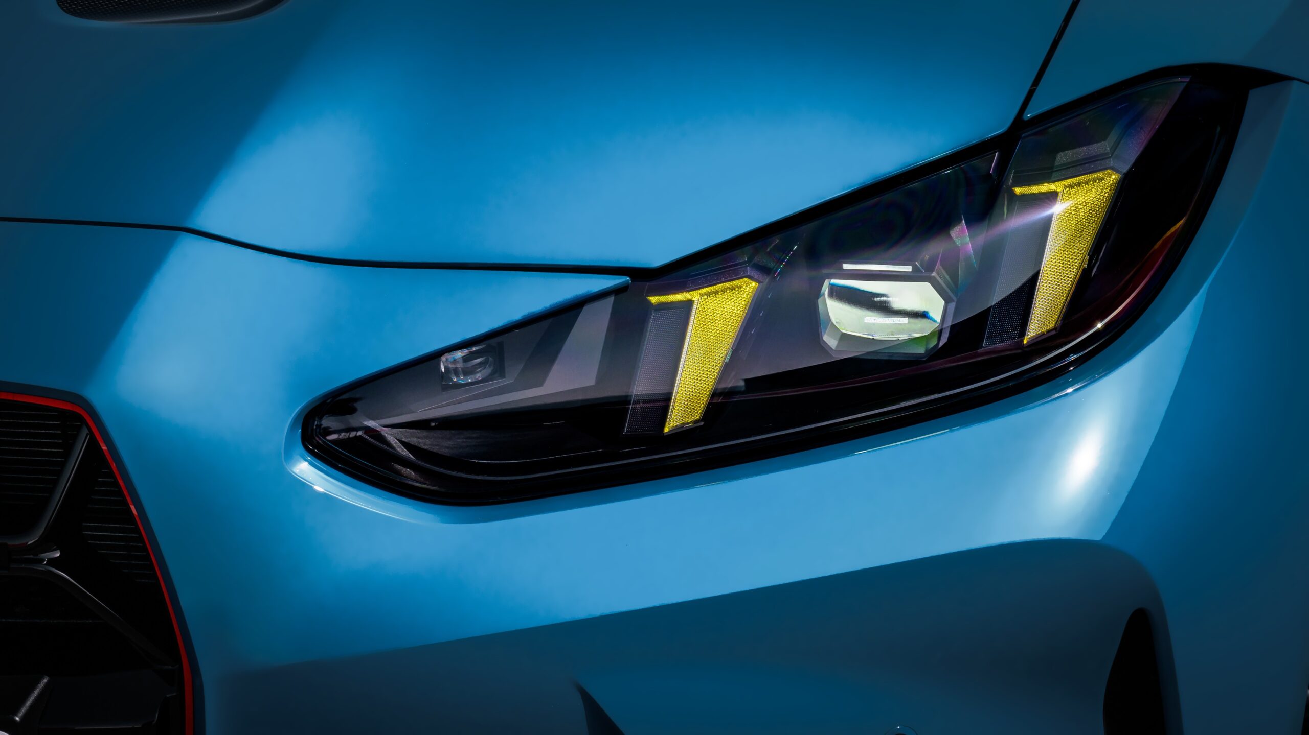 The M3 CS Touring is as visually aggressive as it is dynamic. The frameless BMW M kidney grille, bold aerodynamics, and exclusive color options make a strong statement. Choose from British Racing Green, Laguna Seca Blue, Frozen Solid White, or Sapphire Black Metallic, each accented by a red surround on the roof spoiler. Racing-inspired yellow LED headlights add a motorsport touch.