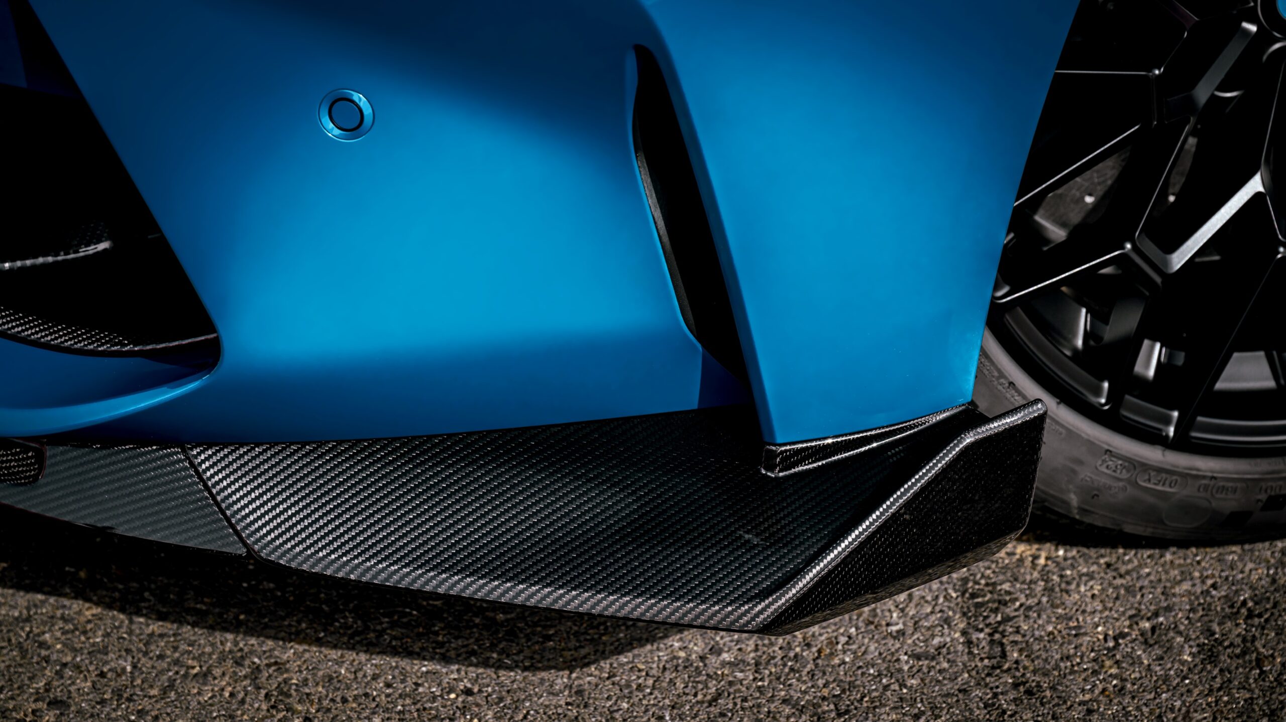 A major highlight of the M3 CS Touring is its focus on weight reduction. Extensive CFRP components include the bonnet, front splitter, mirror caps, roof, and rear diffuser, all contributing to a 15 kg weight reduction compared to the M3 Competition Touring. A specially designed M front-end strut brace further enhances structural rigidity for sharper handling.